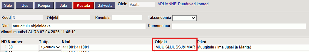 ost - aruanded - tasumised raport tasumiste kohta Kui kontol on küljes objektitase kohustuslik ning tasumisel on real taseme objekt olemas, kontrollida et süsteemiseadistustes oleks märgitud