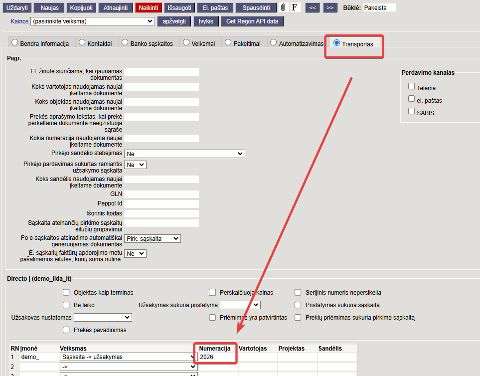 Jei yra siunčiami dokumentai iš eshopo ir naudojama Directo numeracija turite atlikti: