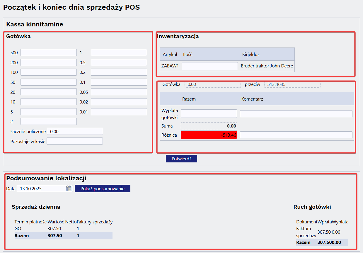W oknie potwierdzenia kasjera, przed kliknięciem przycisku „POTWIERDŹ”, należy wykonać poniższe czynności — o ile są widoczne w raporcie.