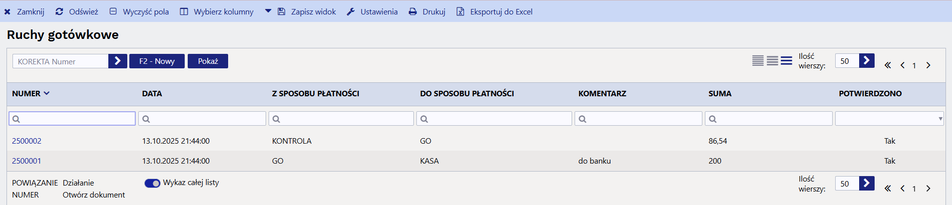 Pole „Komentarz” służy do wprowadzenia opisu operacji kasowej i zostanie przeniesione do dokumentu utworzonego podczas procesu potwierdzania.