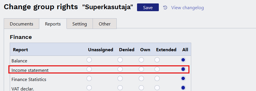 - Own rights - User can view only income statement reports where on the configuration its employee code is marked.