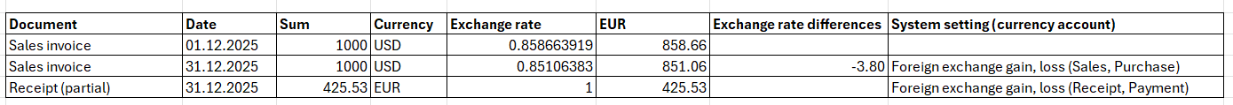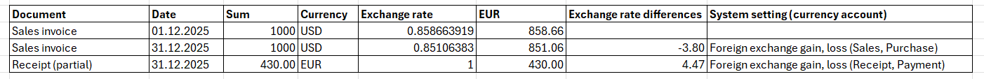 12.1.3. Receipt of the sales invoice in the base currency (EUR) not at the central bank rate of the day