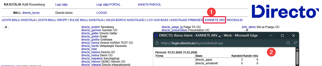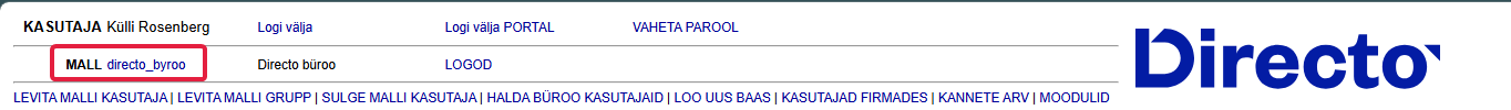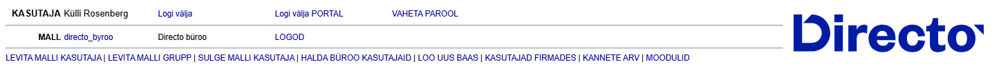 Büroos näeb tavakasutaja baaside nimekirja, kuhu talle on ligipääs antud. Büroo super kasutaja näeb kõiki antud büroo all olevaid baase ning üleval linke erinevate tegevuste ja aruannete kohta.