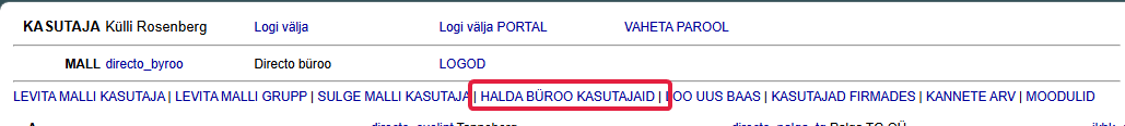 Kasutaja tuleb lisada büroo esilehel Halda büroo kasutajaid seadistusse.
