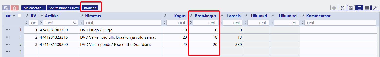 4. Kauba lisandumisel lattu: kasuta uuesti Broneeri - see suurendab olemasolevaid broneeritud koguseid vastavalt laoseisule.