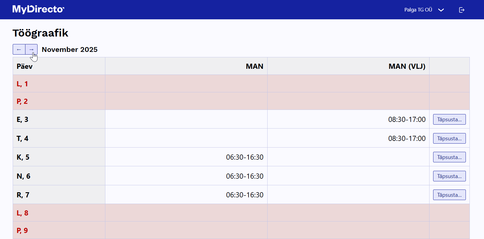 Töögraafik MyDirectos