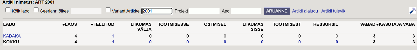 Veateatega koguse väljalt avanevas Artikli hetkeseisus on laoseis piisav:
