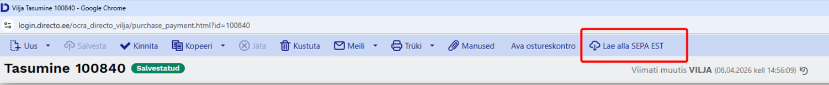 - SEPA EST - võimaldab tasumised eksportida internetipanka.