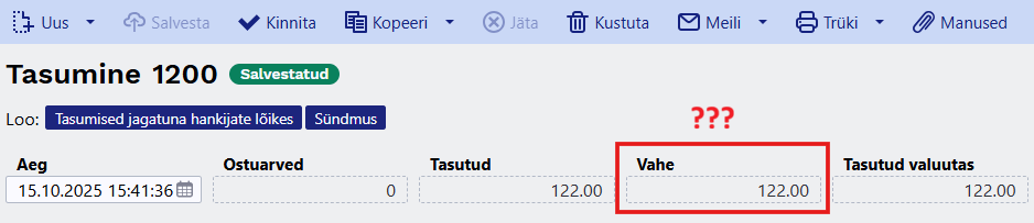 Kui ostuarve saabub varem ja tasumine on hiljem, aga ei ole tasumise peal kohe ostuarvet lisatud