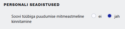 Jah valiku puhul tekib soovi liigi juurde valik Kinnitajate arv. Soovi liikide kaupa saab määrata, milliseid puudumisi aktsepteerib üks ja milliseid 2 kinnitajat.