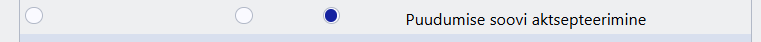Töötaja otsene juht saab soovitud puudumist aktsepteerida Puudumiste aruandest vaatega Aktsepteerimine. Vaade tekib aruandele, kui vähemalt üks soovi liik on puudumiste alla lisatud ja see on seotud teise puudumise liigiga. Õiguste alt, sakil Muu → Muutmisõigused peab olema lubatud Puudumise soovi aktsepteerimine.
