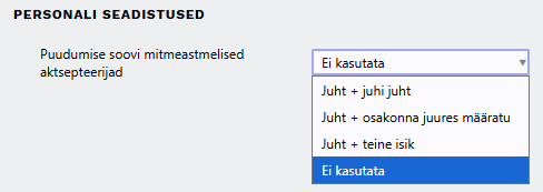 Süsteemi seadistuses → Puudumise soovi mitmeastmelised aktsepteerijad on võimalik täpsemalt määrata, kes puudumisi aktsepteerida saavad.