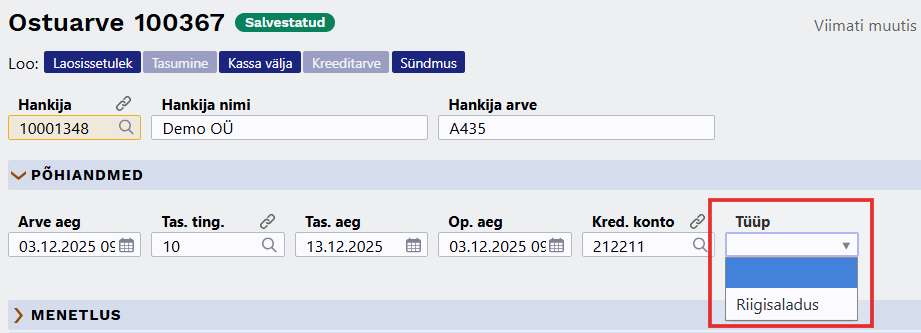 - Saaja registrikood - Ostuarve, Tasumise või finanstkandel oleva Hankija reg.nr hankija kaardilt