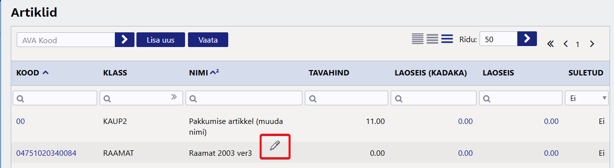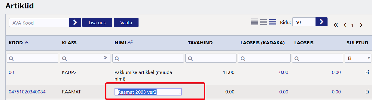 - Topeltklikk redigeeritaval väljal võimaldab andmeid koheselt muuta