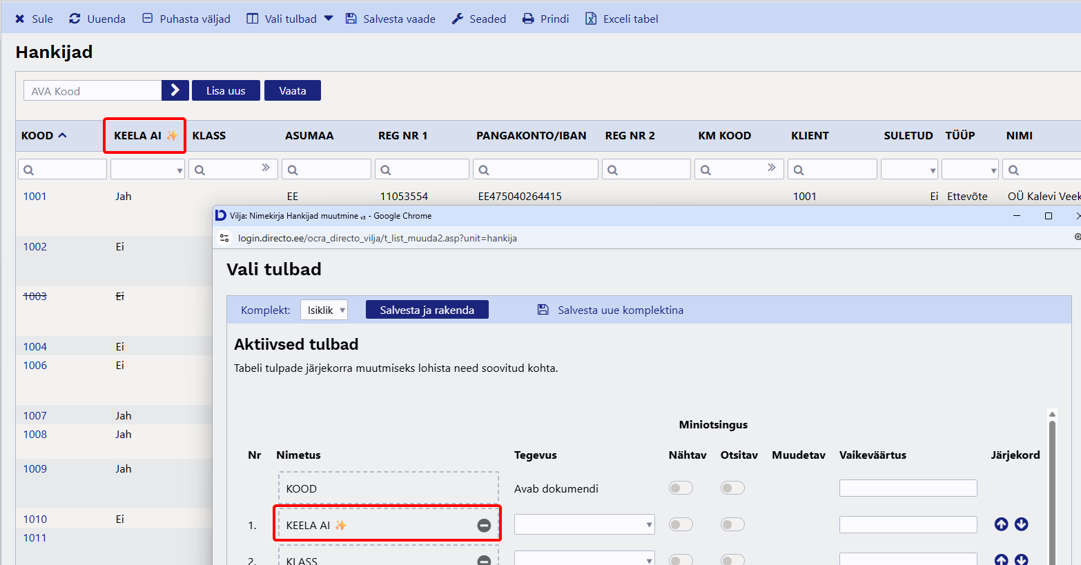 Lisa hankija registrisse „Keela AI“ tulp, nii näed mugavalt, kellel on see keelatud.