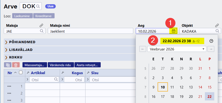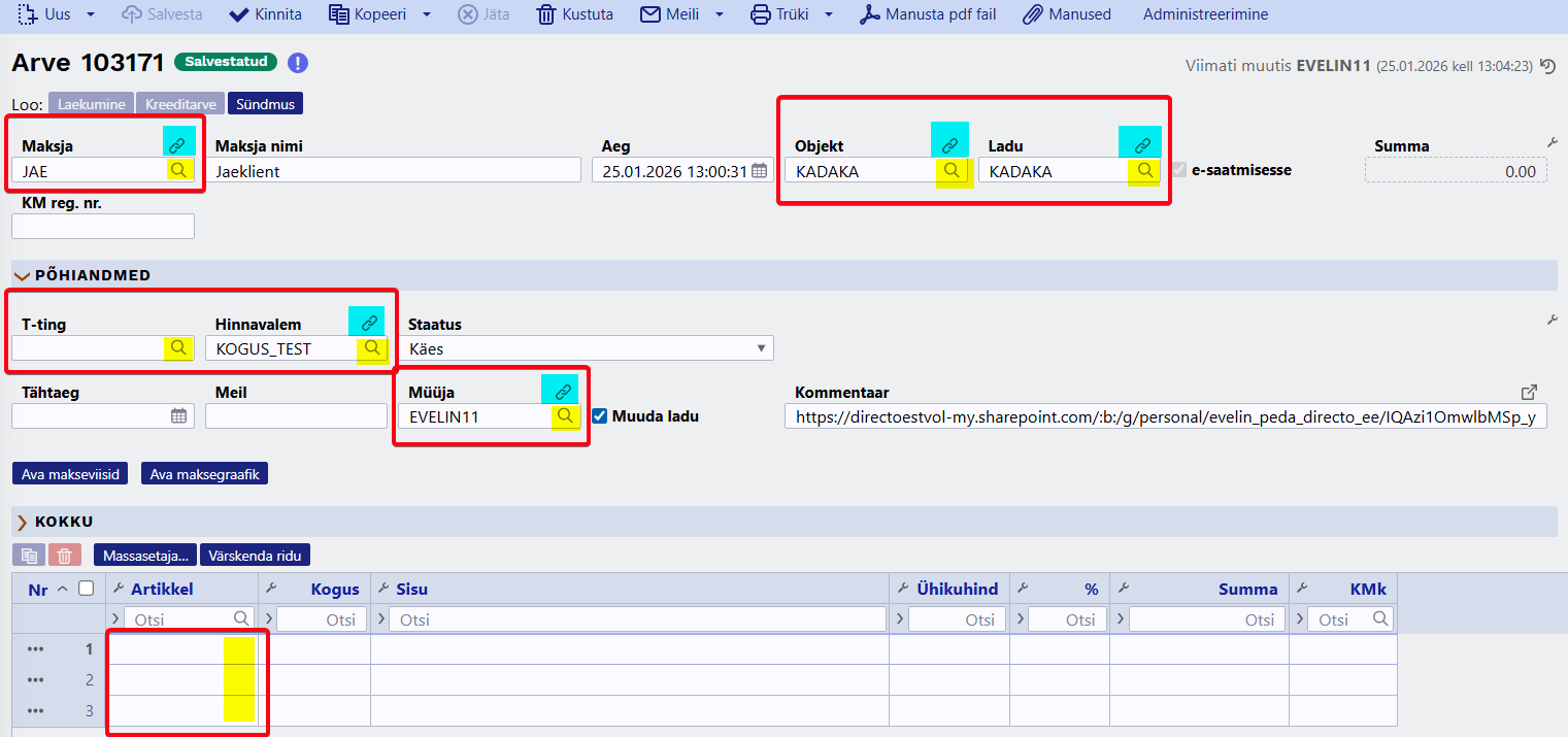 - UUS! Dokumendi vaate kohandamine - saad dokumendi päises ja ridadel nähtavale panna vaid need väljad, mis on olulised või vajalikud täita.