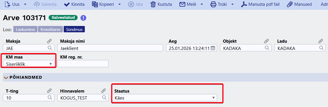- Salvestatud - dokument on salvestatud, dokumendi väljade muutmisel luuakse automaatselt mustand.
