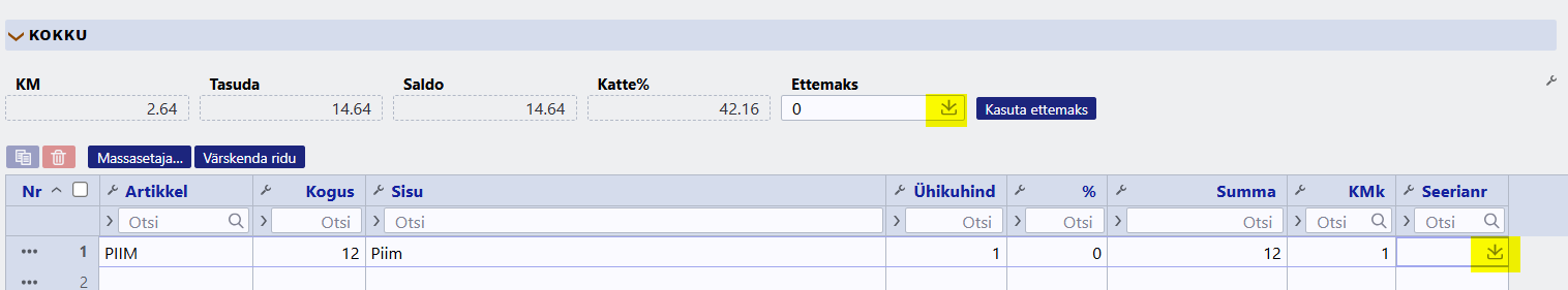 Kasuta otsingus näiteks artikli koodi või nime, kui vajad väljavõtet konkreetse rea kohta: