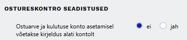 E-arve töötlemisel eemaldatakse nullsummaga read - valikud Jah/Ei. Kui valida „Jah“, siis nullsummaga ridu ostuarvele ei impordita. Seadistuse vaikimisi väärtus on „Ei“.