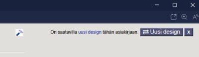 Directon dokumenteissa näkyy ilmoitus, että dokumentista on saatavilla uusi ulkoasu, ja käyttäjä voi avata sen painikkeella Uusi Design.