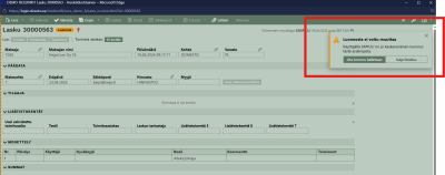 Otsikon muutoslokissa näkyy rekisterinäkymä, jossa ovat dokumentin pääkentät.