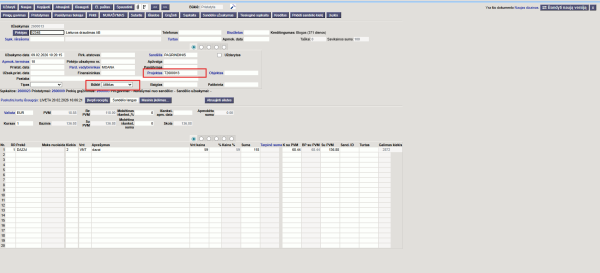 Tuomet automatiškai sukuriamas naujas projektas ir jis yra susiejamas su pasiūlymu.
