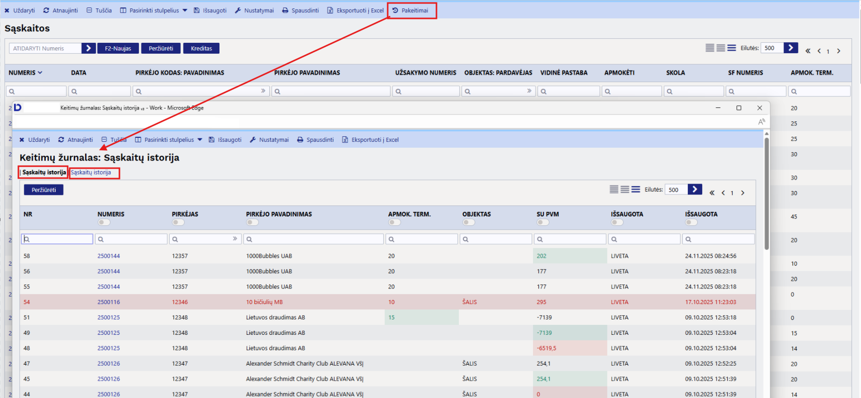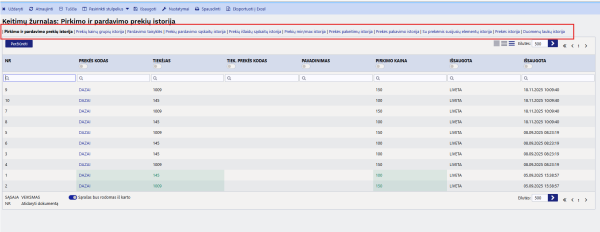 Galime surasti pakeitimų žurnalus ir pačiuose dokumentuose. Yra 2 atskiri pakeitimų žurnalai rodantys atskirai antraščių ir eilučių atliktų pakeitimų informaciją.