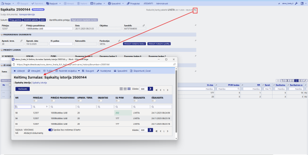 Galime surasti pakeitimų žurnalus ir pačiuose dokumentuose. Yra 2 atskiri pakeitimų žurnalai rodantys atskirai antraščių ir eilučių atliktų pakeitimų informaciją.
