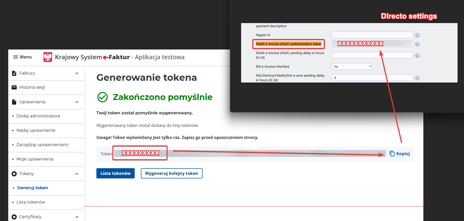 Master Settings→Transport→Polish e-invoice (KSeF) authentication token- generated token number from KSEF for integration- In KSEF Select the role to which the token is assigned added rights: