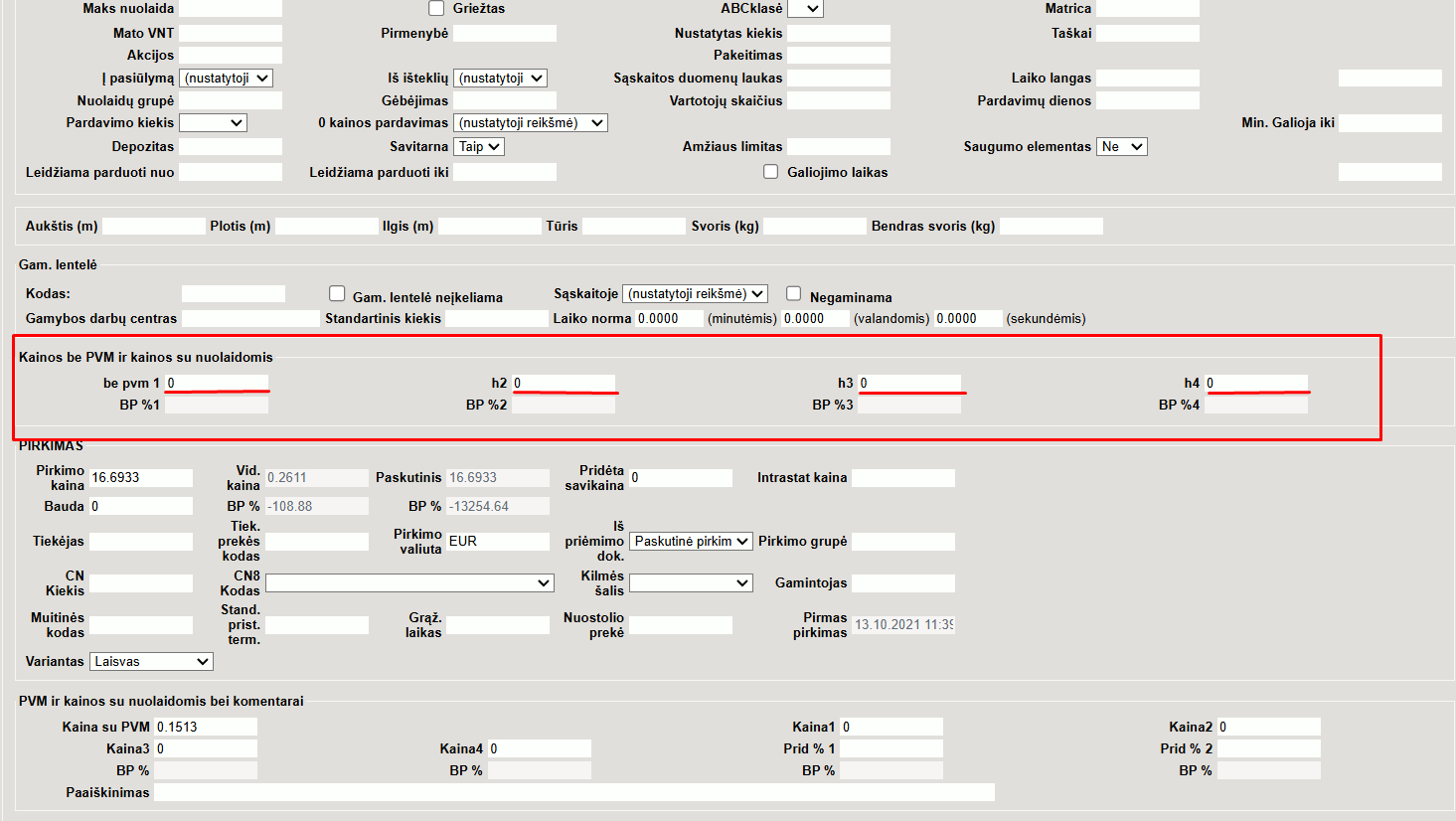 - Savikaina - prekės kortelėje pirkimo kaina