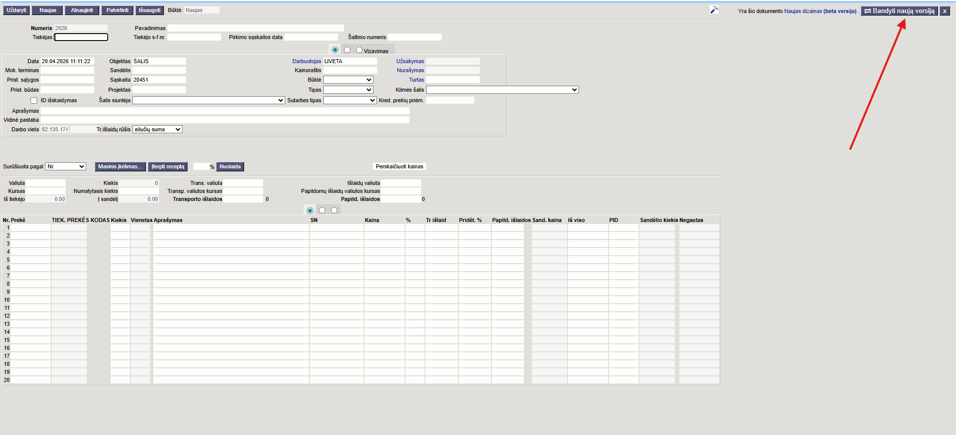 Prieš pereinant prie naujo dizaino, vartotojas, turintis SUPER teises, turi patikrinti, kad dokumentuose, kuriuos vartotojai kasdien naudoja: