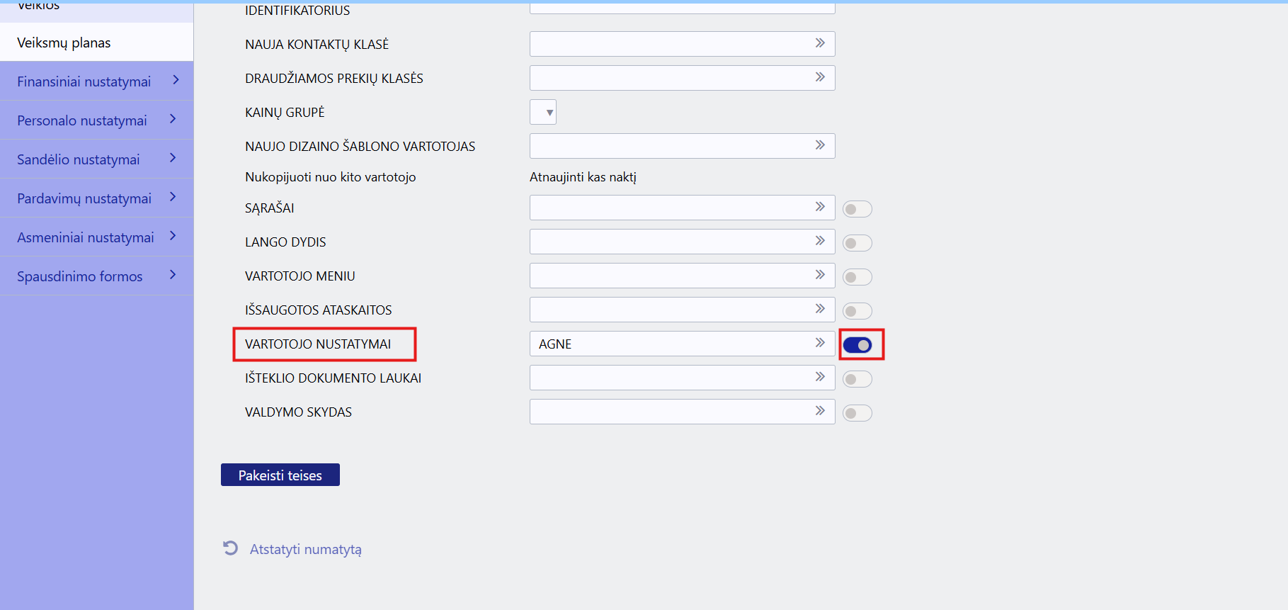 2 variantas: vartotojas pats atkuria savo pradinius nustatymus