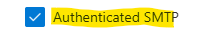 ✅ Įsitikinkite, kad „Authenticated SMTP“ varnelė yra pažymėta