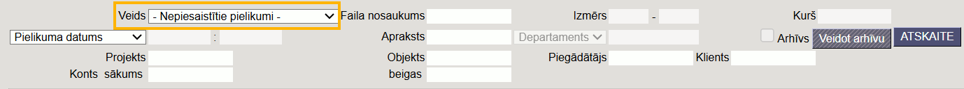 3) Tad tiks atvērta atskaite Pielikumi. Tās laukā Veids norādiet opciju Nepiesaistītie pielikumi.
