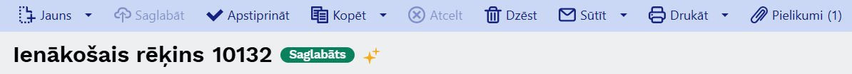 Visi dokumenti, kuri izveidoti ar MI, dokumentu transporta sarakstā un ienākošajā rēķinā (ja ienākošajiem rēķiniem tiek izmantots jaunais dizains), ir marķēti ar ✨ simbolu.
