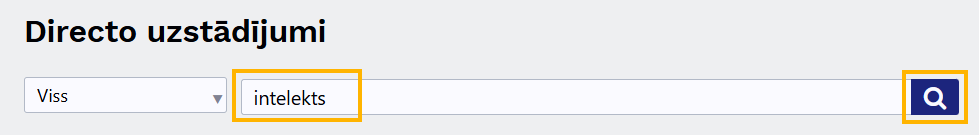 2) Sistēmas uzstādījumu meklēšanas laukā jāieraksta intelekts un jānospiež taustiņš Enter vai jāuzspiež uz meklēšanas ikonas.