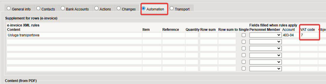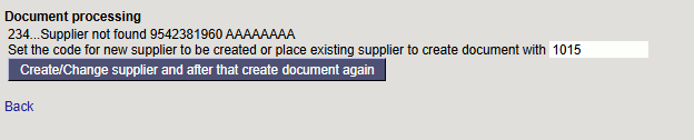 The code will be suggested automatically or you can change it. Then press the button Create/Change supplier and after that create document again - Directo will create supplier card and purchase invoice document. You have to check if all data you need where added to supplier card - if no, fill it manually.