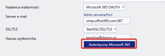 Instrukcja konfiguracji wysyłki wiadomości e-mail w Directo