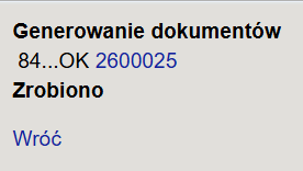 Po wykonaniu operacji system wyświetli komunikat zwrotny z numerem utworzonego dokumentu.
