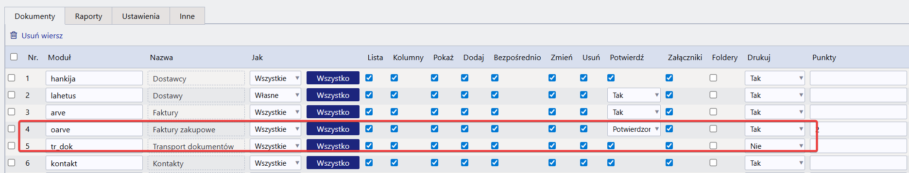 Domyślnie użytkownik musi mieć uprawnienia do przesyłania dokumentów i faktur zakupu, lub uprawnienia do tworzenia faktur zakupu.